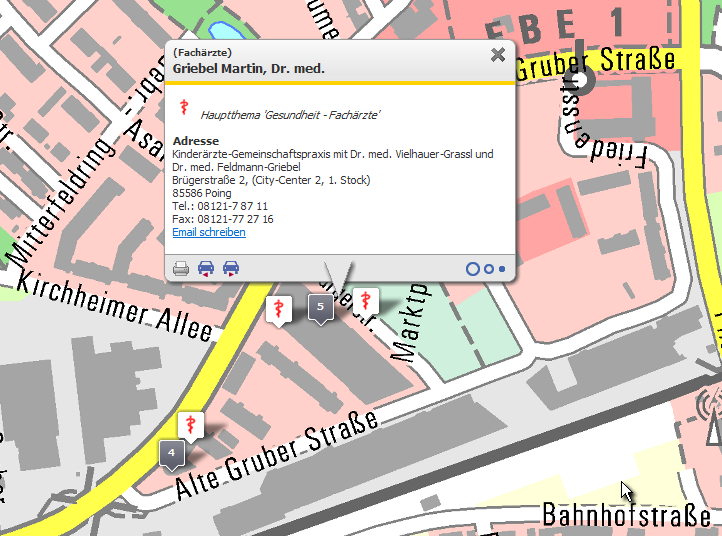 Hinweis: Wenn Sie den am rechten Rand der Seite maps.poing.de befindlichen Button <Gesundheit> klicken, finden Sie alle Informationen zu den Fachärzten in Poing